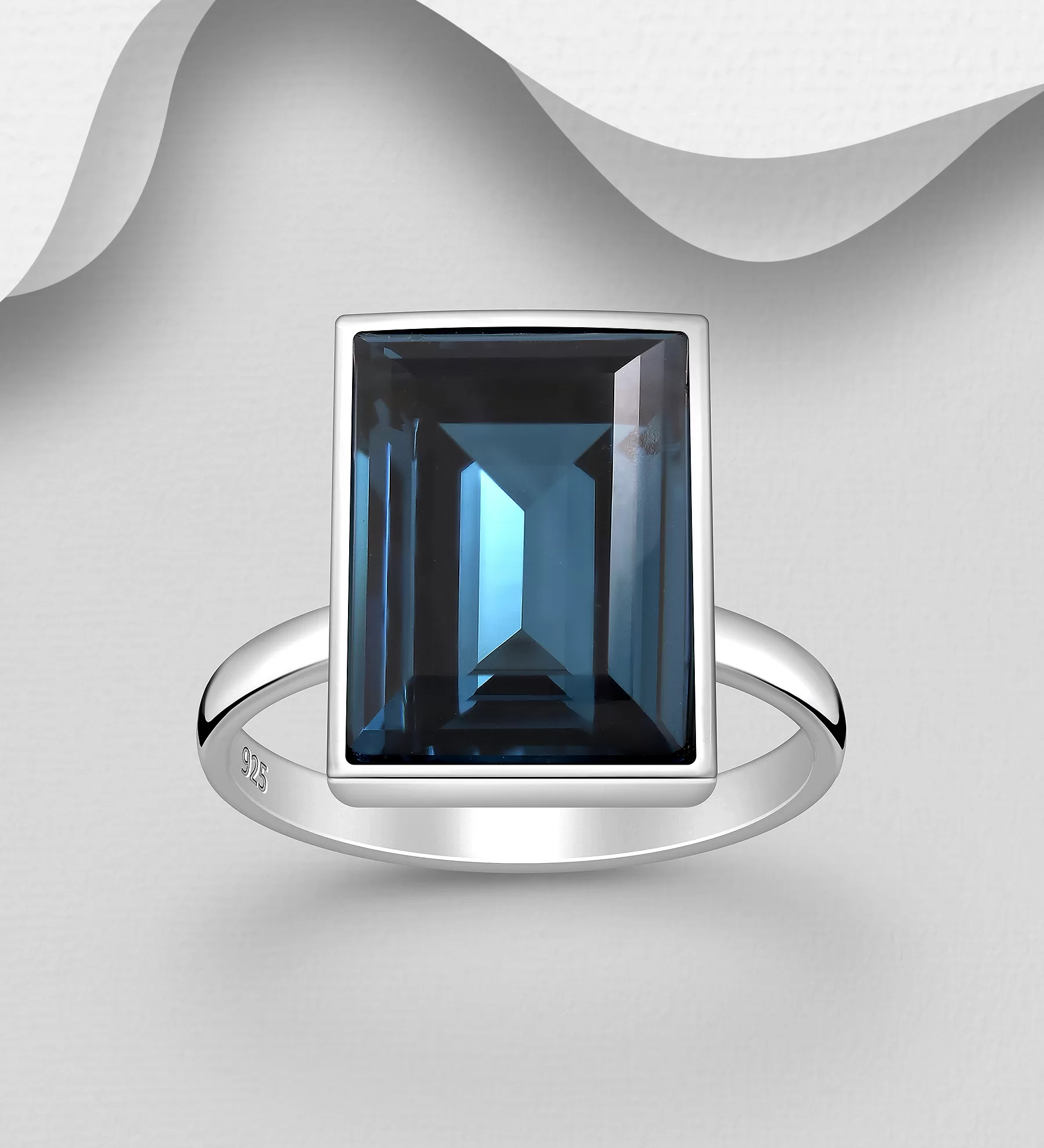 Anillo con fino cristal azul montana austriaco