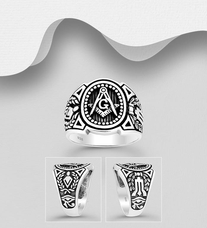 Anillo con el símbolo de la masonería y el ojo de Horus